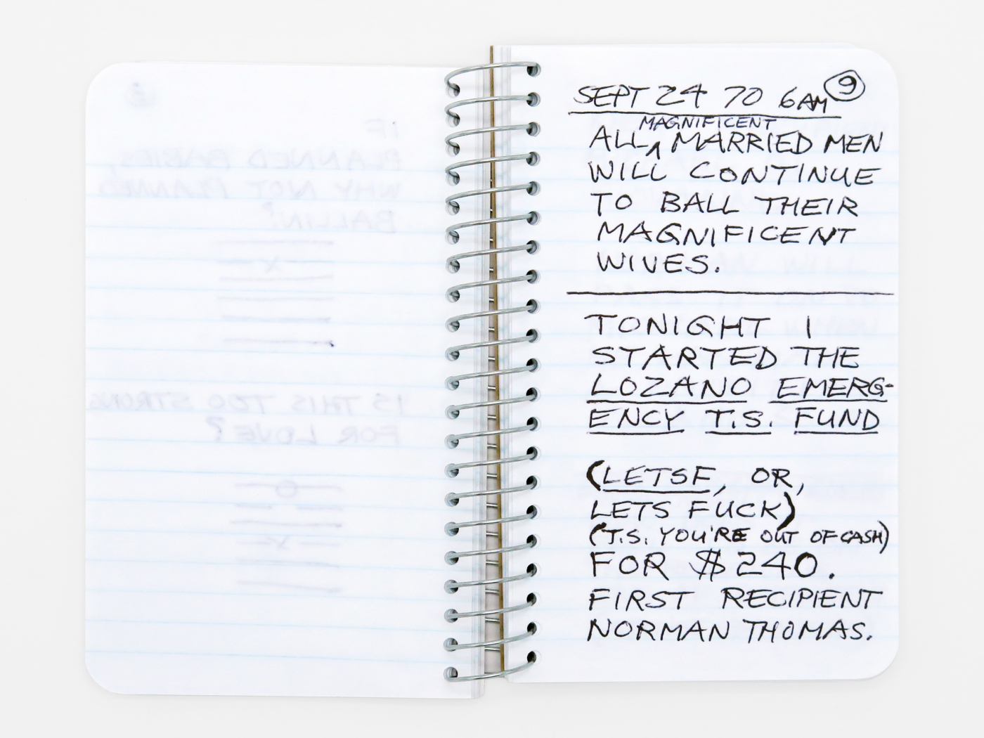 Lee Lozano Private Book 3 Karma, New York, 2017